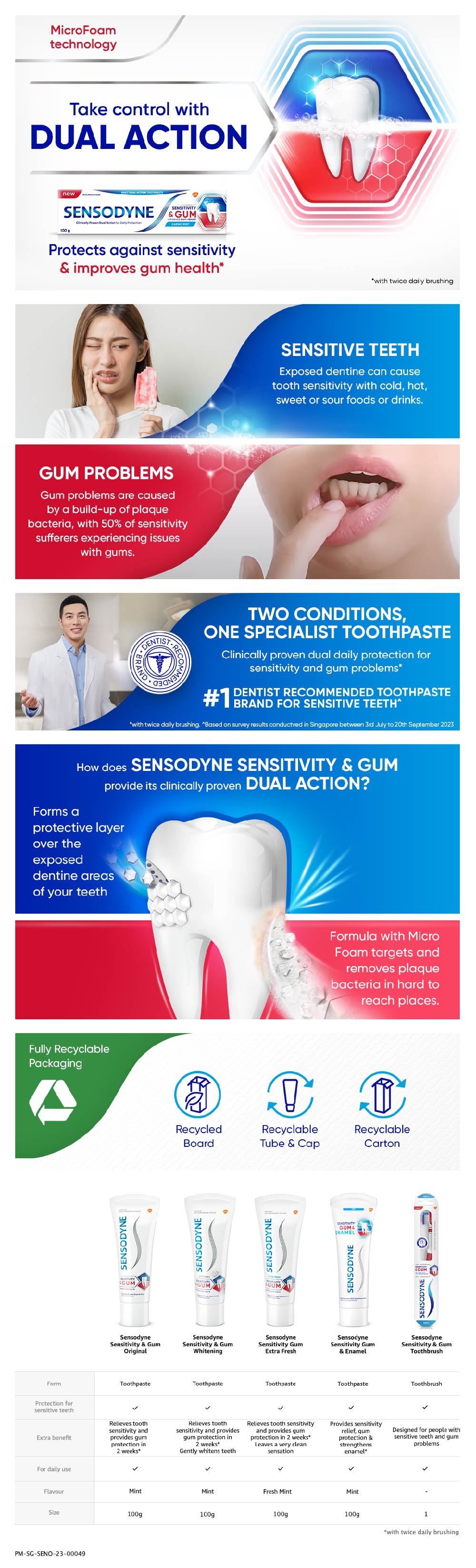 For dual action for sensitivity & gum problems, try Sensodyne Sensitivity & Gum toothpaste.
