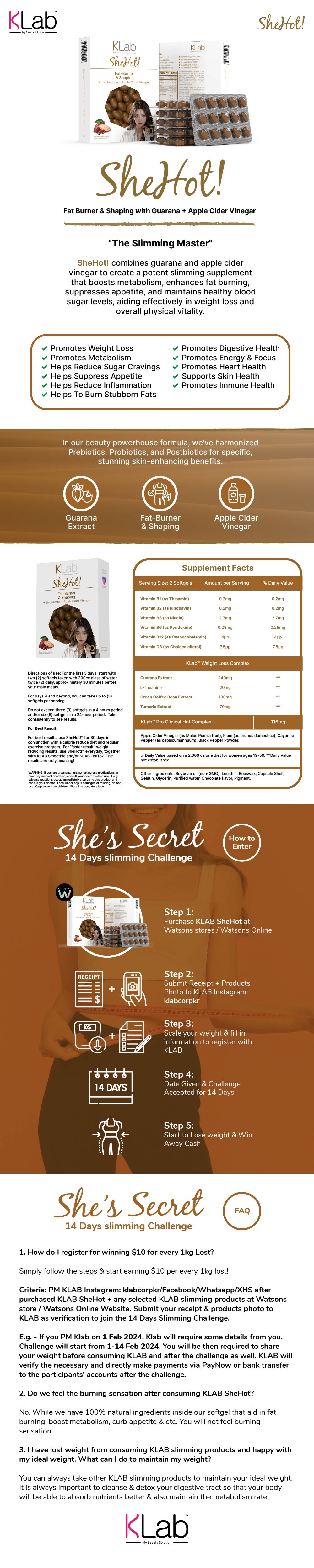 KLAB Shehot Capsule (Promotes Weight Loss, Metabolism, Helps Suppress Appetite, Burn Stubborn Fats, Promotes Immune Health) 90s