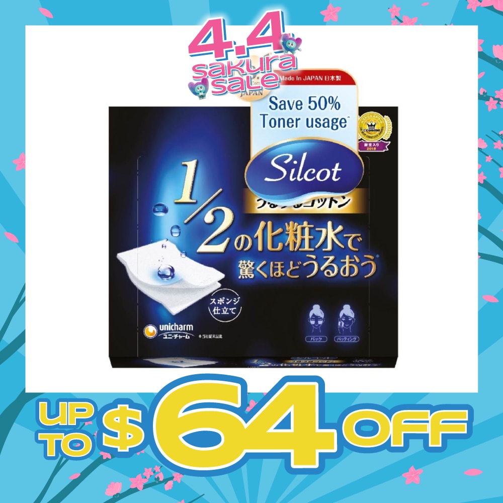 Silcot Uru-Uru Sponge is amazingly moist with 50% less toner usage. It provides soft and no-fuzz patting, peeling when used as a face pack. Separate into two sheets and attach firmly to the eye areas. Fluorescent brightening agents are not used