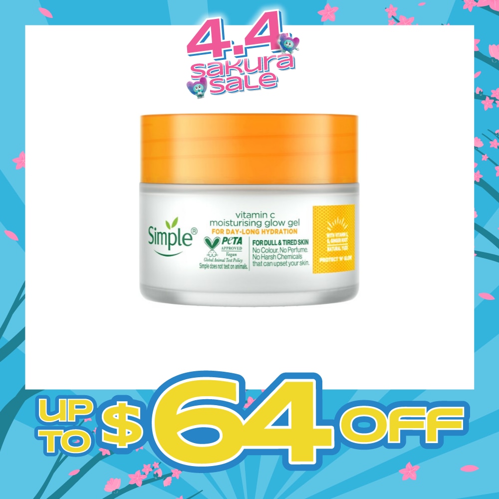 SIMPLE VITAMIN C MOISTURISING GLOW GEL 40g Simple Vitamin C Glow Moisturising Gel is proven to give 72hrs long hydration for soft, smooth, bright, and glowing skin. With exclusive skin conditioning agents and glycerine, this glow gel provides all day hydration to reveal brighter skin.