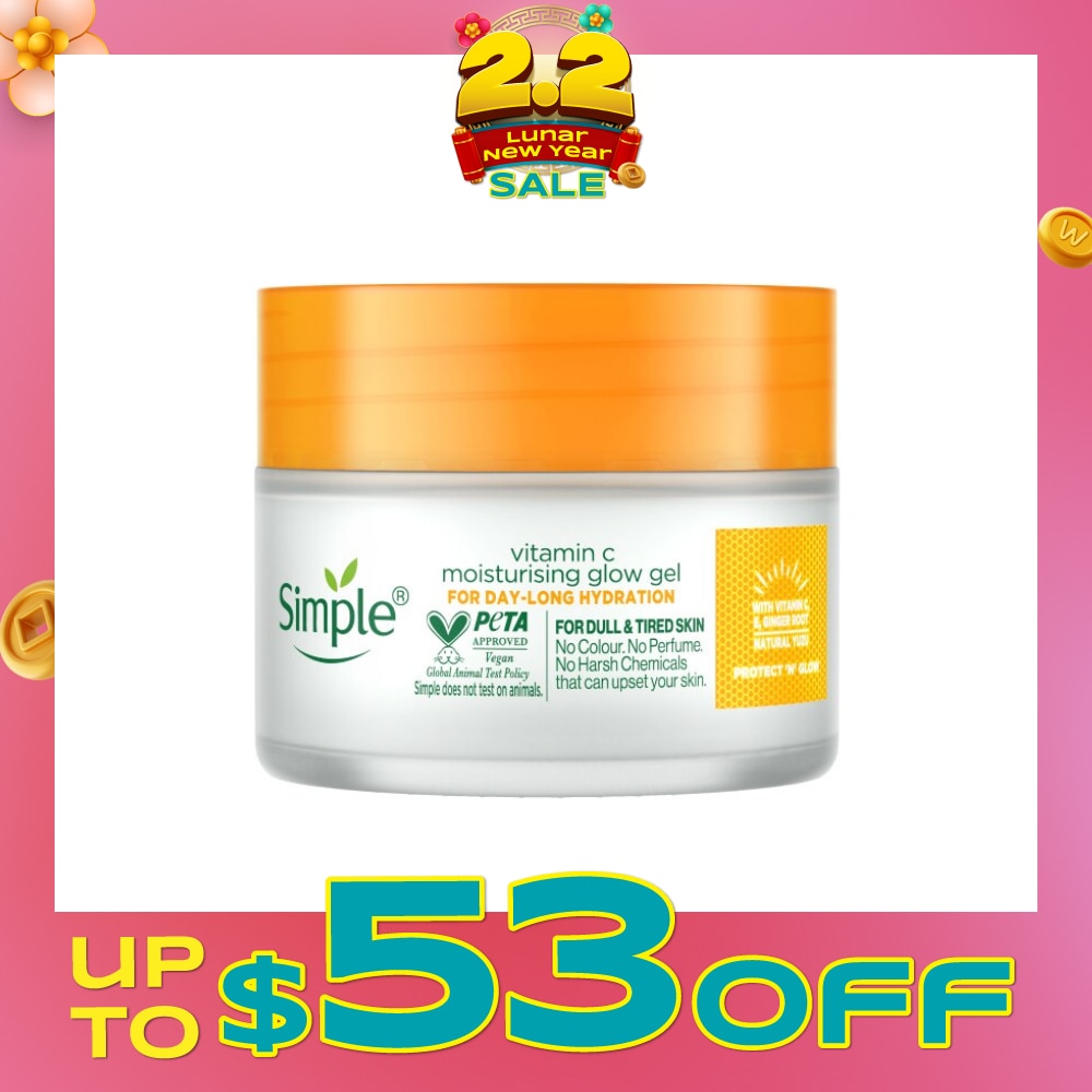 SIMPLE VITAMIN C MOISTURISING GLOW GEL 40g Simple Vitamin C Glow Moisturising Gel is proven to give 72hrs long hydration for soft, smooth, bright, and glowing skin. With exclusive skin conditioning agents and glycerine, this glow gel provides all day hydration to reveal brighter skin.