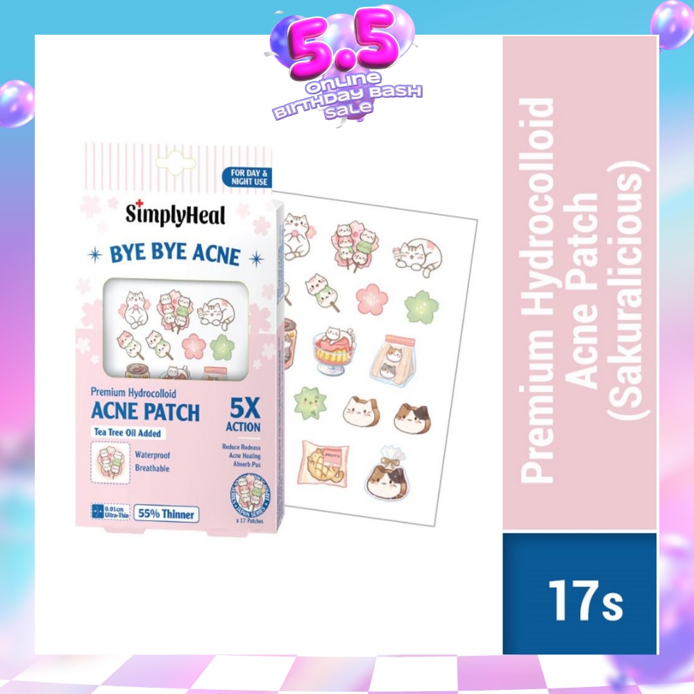SIMPLYHEAL Premium Hydrocolloid Acne Patch Sakuralicious (Tea Tree Oil Added, Waterproof & Breathable) 17s