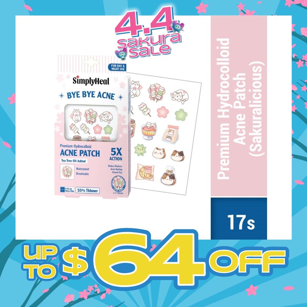 SIMPLYHEAL Premium Hydrocolloid Acne Patch Sakuralicious (Tea Tree Oil Added, Waterproof & Breathable) 17s