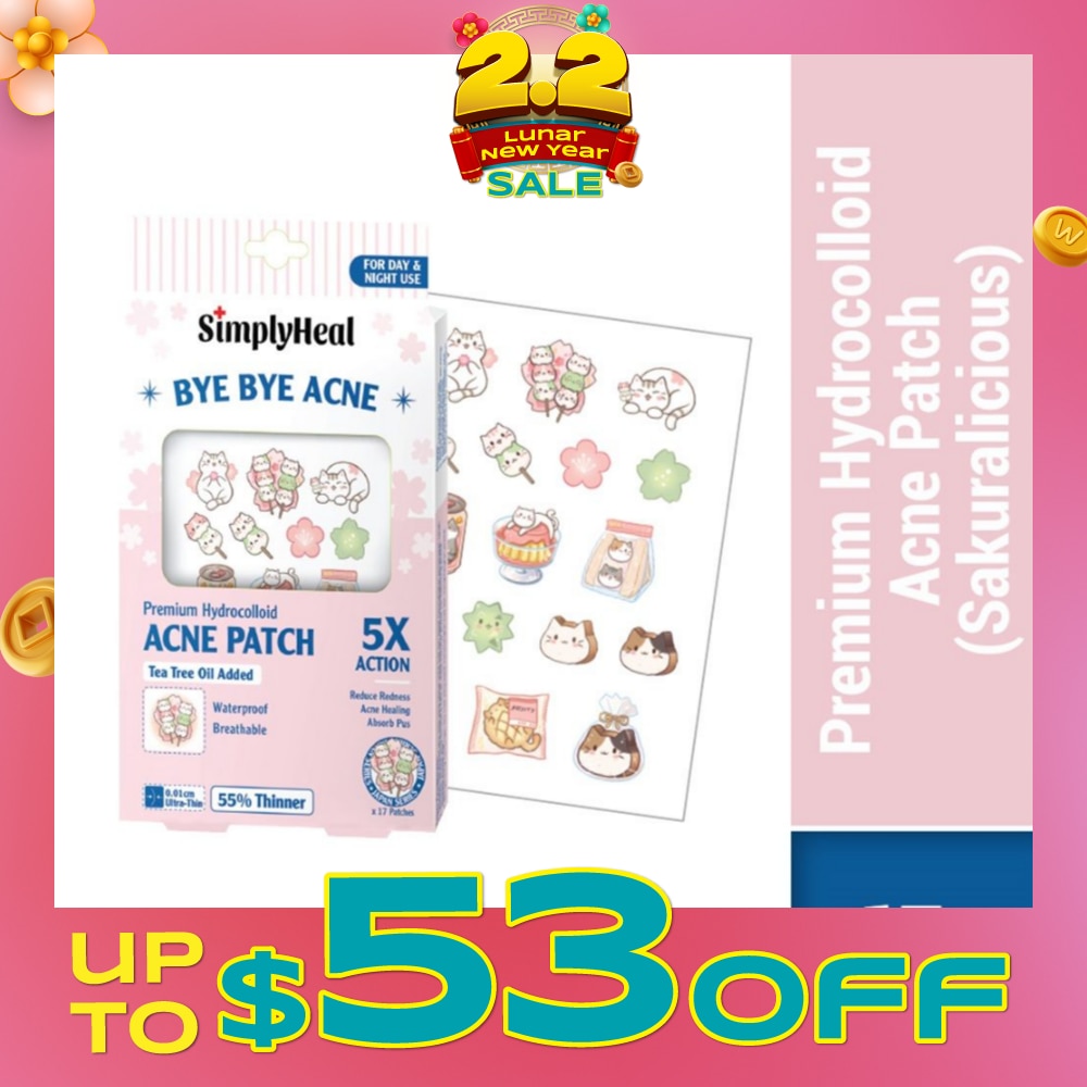SIMPLYHEAL Premium Hydrocolloid Acne Patch Sakuralicious (Tea Tree Oil Added, Waterproof & Breathable) 17s
