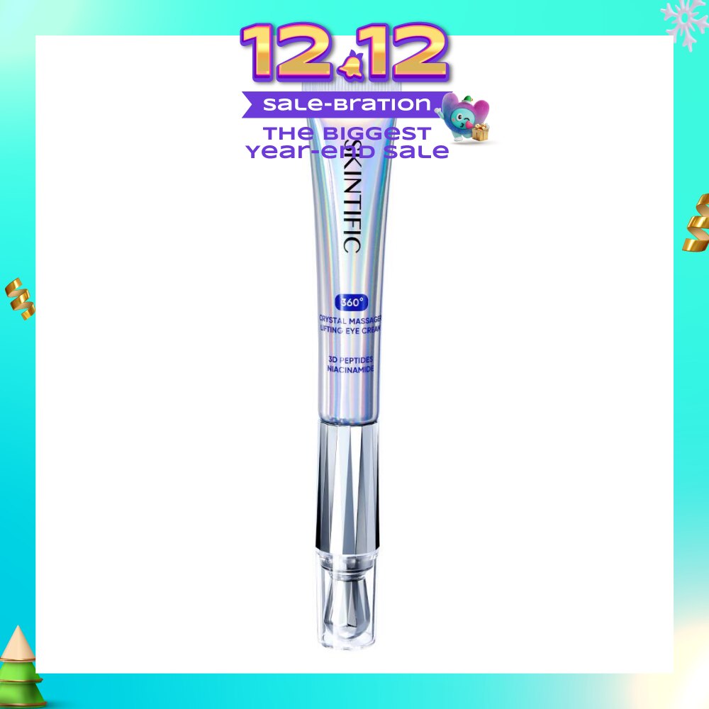 360 Crystal Massager Lifting Eye Cream owns the unique germany Lift-Tech, with 184 gilded Crystal Surface and 12000/mini vibrations in 360angles, which helps improve absorption and is more effective to reduce visible fine lines and dark circles. With 3D Peptides Complex and niacinamide, this product visibly reduces fine lines, wrinkles, puffiness, and dark circles.