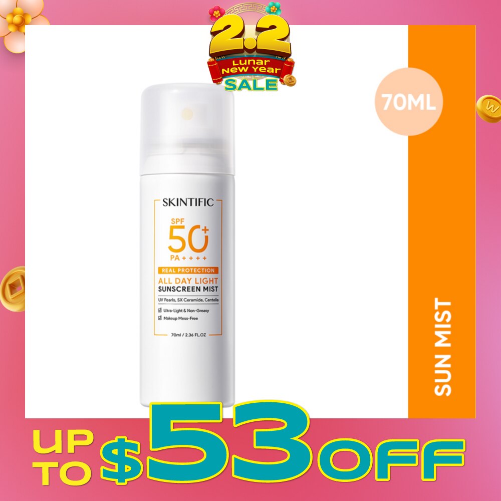 SKINTIFIC All Day Light Sunscreen Mist SPF50+ PA++++ (Ultra-Light, Non-Greasy & Makeup Mess-Free) 70ml