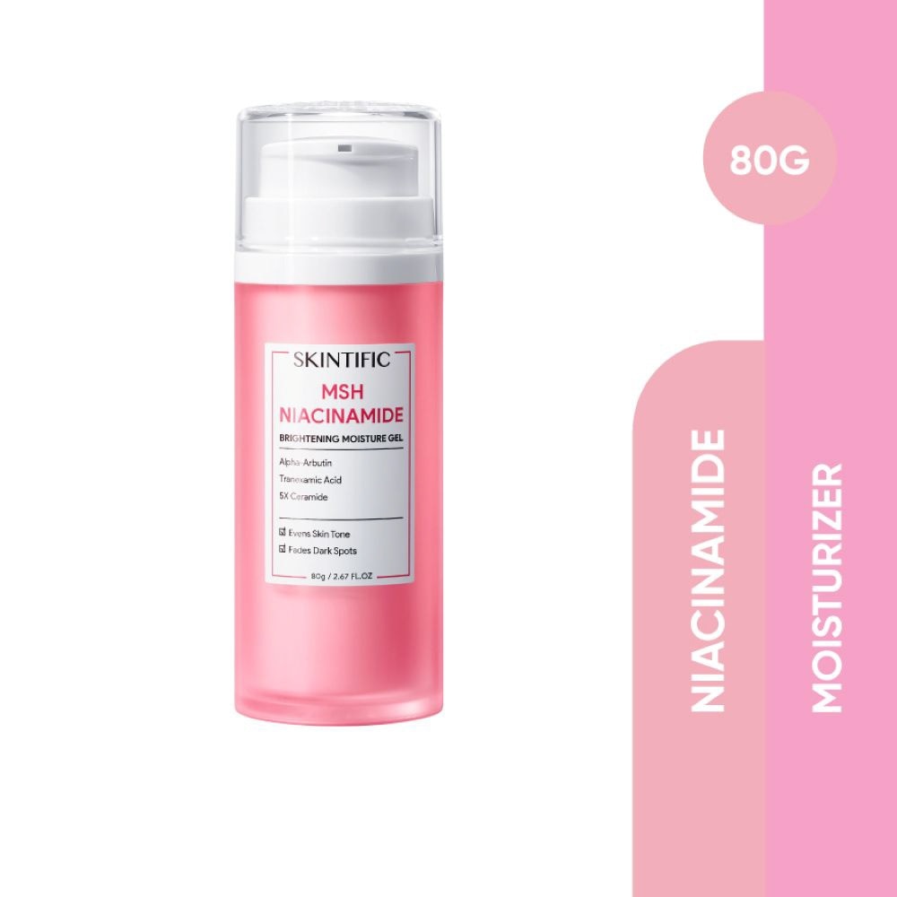 MSH Niacinamide Brightening Moisture Gel with its lightweight texture, absorbs quickly and helps in oil control. Formulated with the novel SKINTIFIC exclusive MSH Niacinamide combined with two lightweight and highly effective brightening agents, Alpha Arbutin and Tranexamic Acid. Helps in significantly brightens the skin. Clinically proven to be 10 times more effective than regular niacinamide in reducing dark spots and blackheads. It also enriched with Centella Asiatica and 5X Ceramide, that provides a soothing effect on the skin while preserving the strength of the skin barrier.