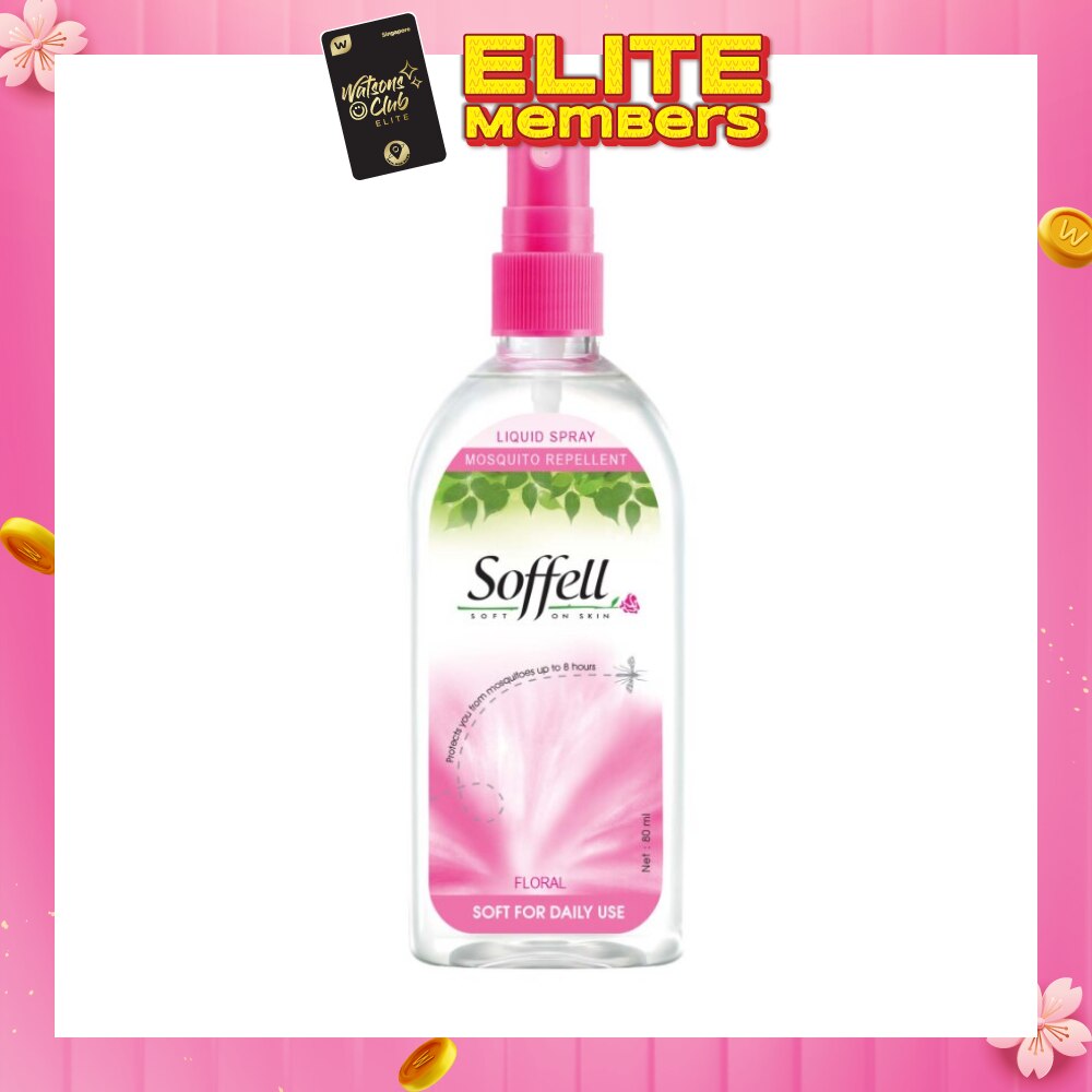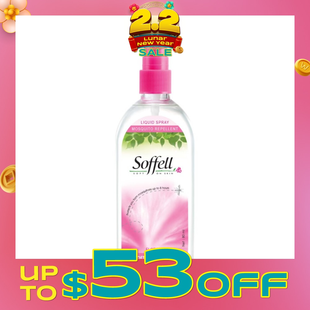 Formulated with DEET, Soffell Floral insect repellent offers superior protection from mosquitoes for up to 8 hours. DEET is considered one the the most effective ingredients to repel insects. Floral fragrance provides users with a soothing and calming effect. The 80ml pump spray bottle is easy to operate, providing protection from insects whenever needed.