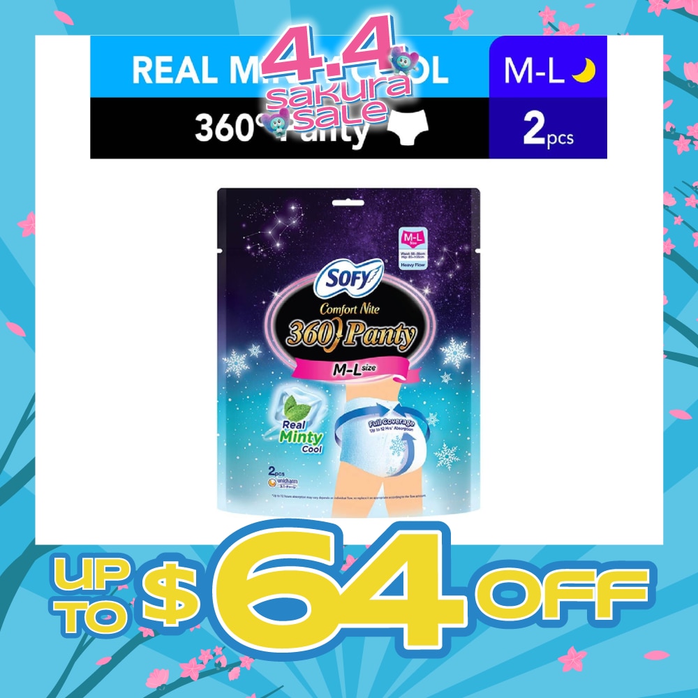 SOFY Comfort 2 in 1 Night Panty 360 Size M-L Cool (Cool & Refreshing + 12hr Protection + Soft & Stretchable) 2s