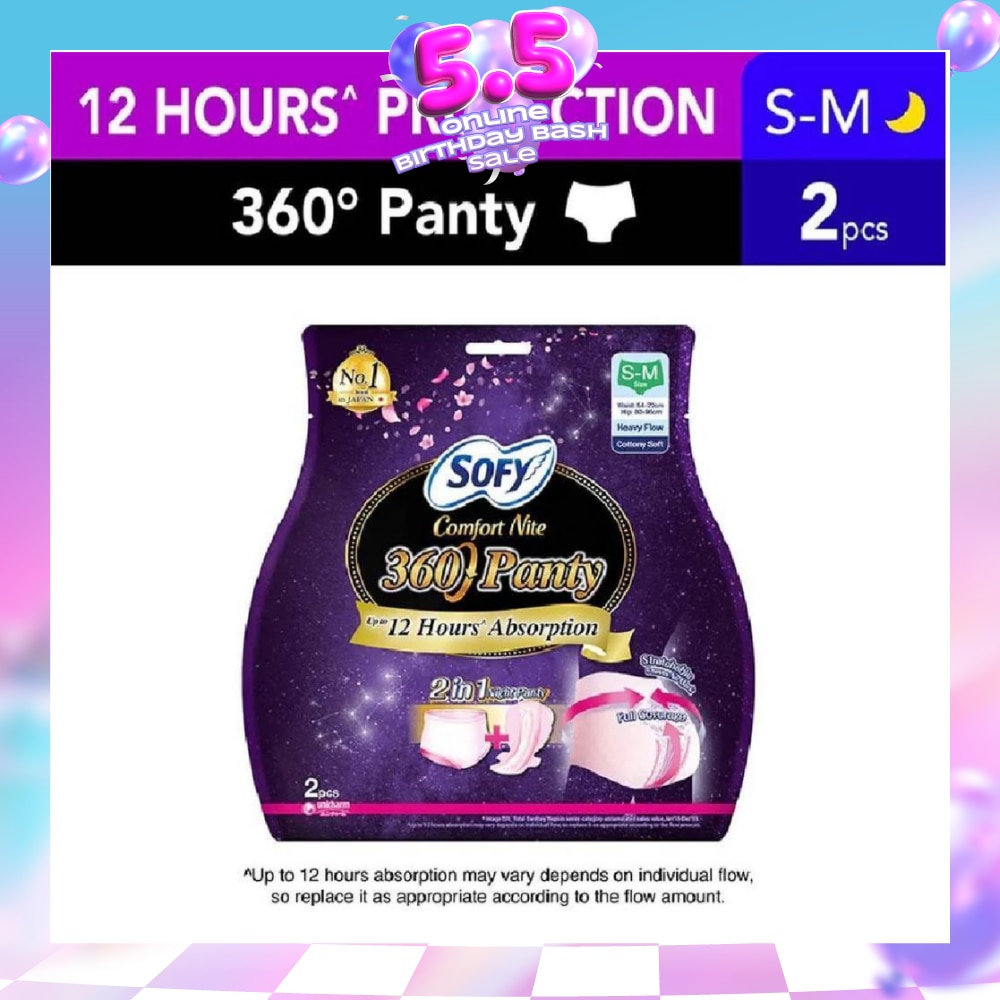 From the No.1 Brand in Japan, SOFY Comfort Nite 360 Panty provides the ultimate security for heavy flow nights with sanitary pad design in the shape of a panty! It provides full coverage protection with absorption up to 12 hours*. Made with stretchable material that fits perfectly on the hip and thigh without gap for comfortable & free movement. SOFY Comfort Nite 360 Panty is soft and breathable, you will feel amazingly comfortable even comparing it to a normal panty. Say goodbye to leakages, feel confident even when you toss and turn all night!