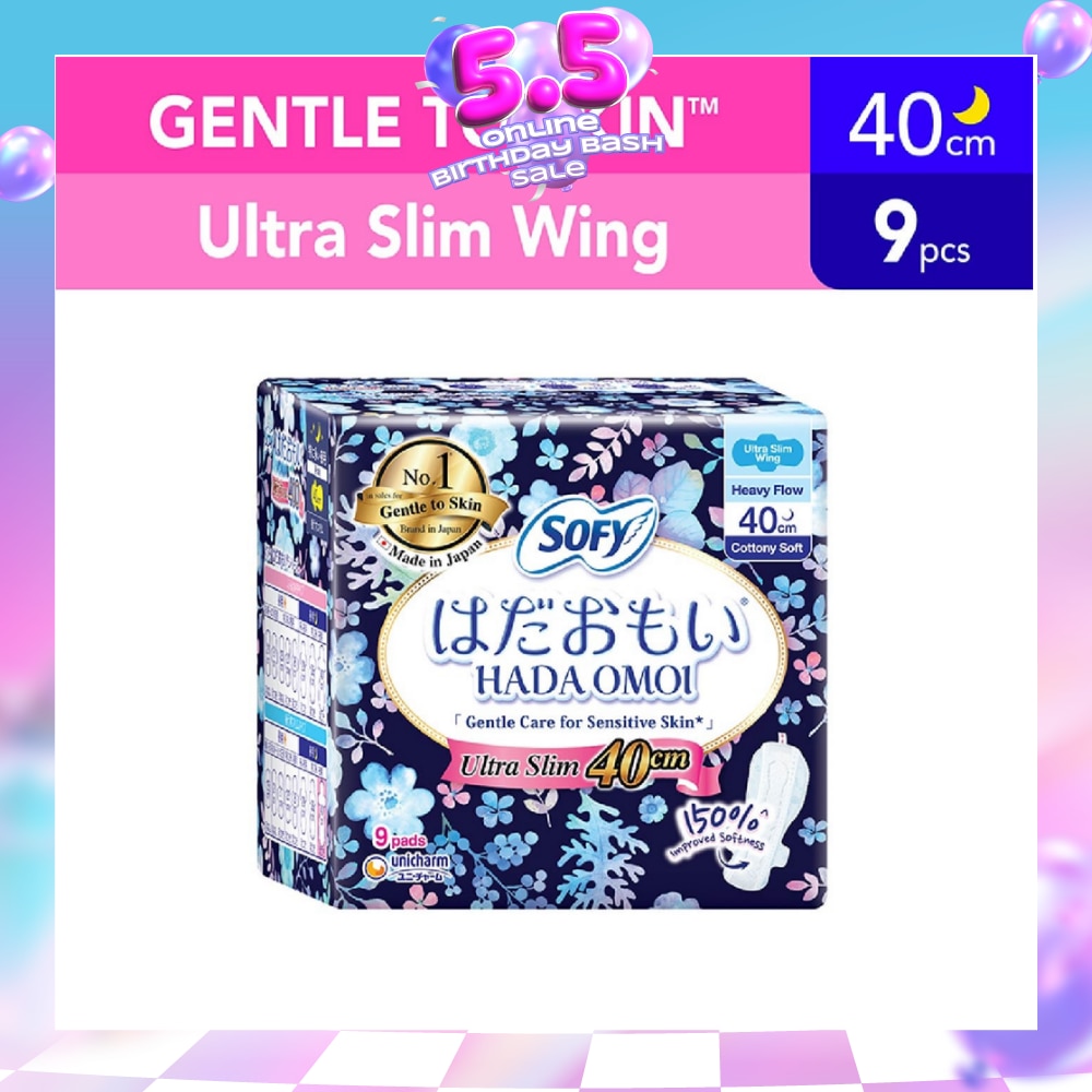 Introducing SOFY Hadaomoi, the No. 1 Gentle to Skin sanitary brand in Japan, developed and made in Japan to give you the premium comfort and confidence during menstrual days. Gentle on sensitive skin with soft & irritation-free side gather which reduces pressure on skin by 90%, new absorption sheet which reduces 35% of menstrual blood on surface, and and new top sheet with softness enhanced by 150%.