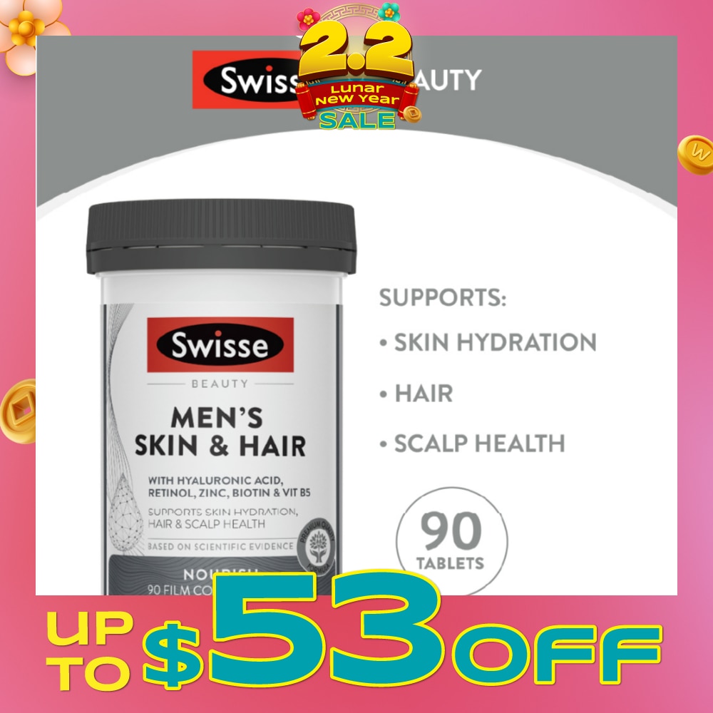 SWISSE BEAUTY MEN'S SKIN & HAIR is a premium quality dual-action beauty nutrition formula designed to help men maintain healthy skin, hair and scalp. It also supports nervous system function and healthy stress response in the body.