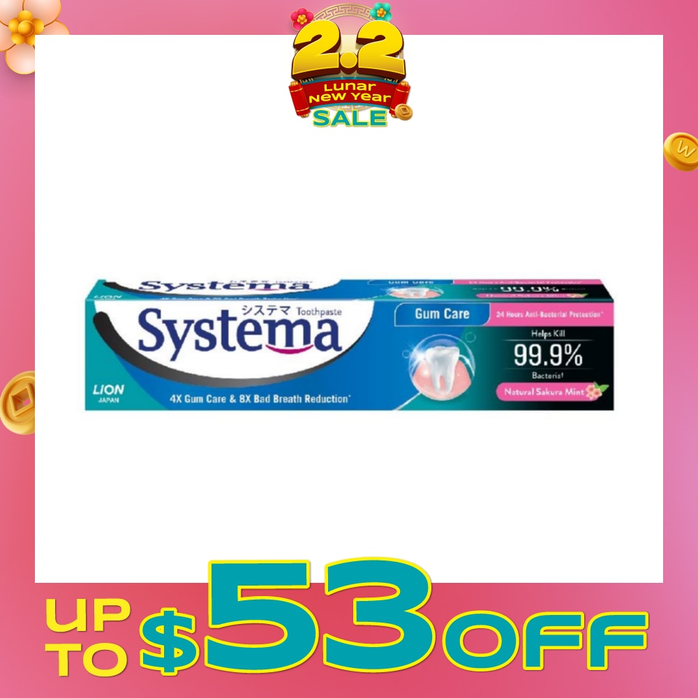*Based on Lion laboratory test. Systema Gum Care Toothpaste (Natural Sakura Mint) is proven in helping to kill 99.9% gum problem-causing bacteria. Gum problem-causing bacteria refers to bacteria inhabiting in the BioFilm – Porphyromonas gingivalis, Fusobacterium nucleatum, Veillonella parvula, Actinomyces viscosus.