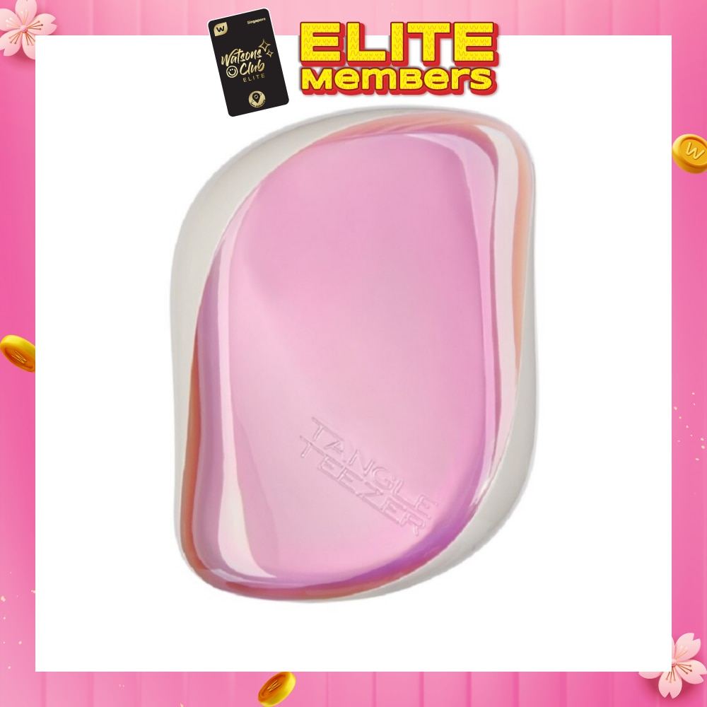 A handbag and purse friendly hairbrush, the Tangle Teezer Compact Styler detangles and styles providing the perfect finishing touch when on-the-go. You can detangle and brush your style back into place anytime, anywhere thanks to its unique two-tiered teeth formation. The long teeth detangle, whereas the shorter teeth smooth the hair cuticle. Hair is left looking smooth with added shine. The Compact Styler comes with a removable cover that helps protect the two-tiered teeth when carrying in a bag. Easy and fuss-free brushing!