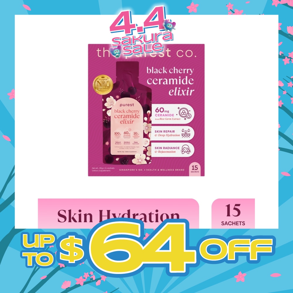THE PUREST CO Black Cherry Ceramide Elixir Dietary Supplement Sachet (For Skin Hydration, Skin Elasticity & Healthy Skin Barrier) 15s