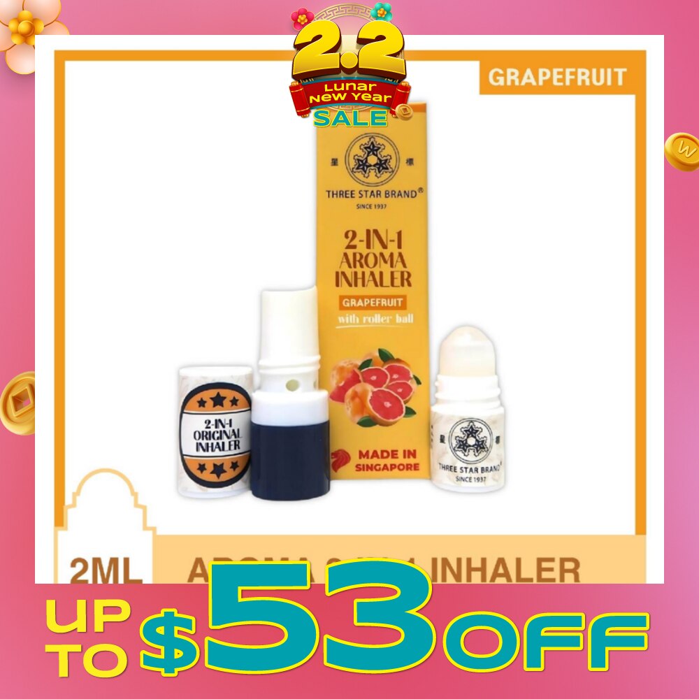 THREE STAR BRAND Aroma Inhaler 2-in-1 Grapefruit 2ml