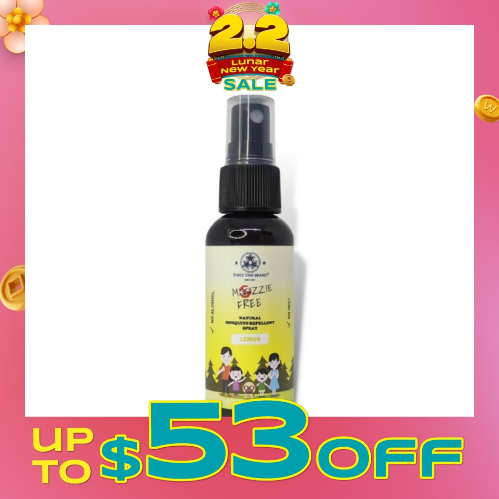 THREE STAR BRAND Natural Mozzie Free Natural Mosquito Repellent Spray Lemon (No Alcohol + No Deet) 50ml