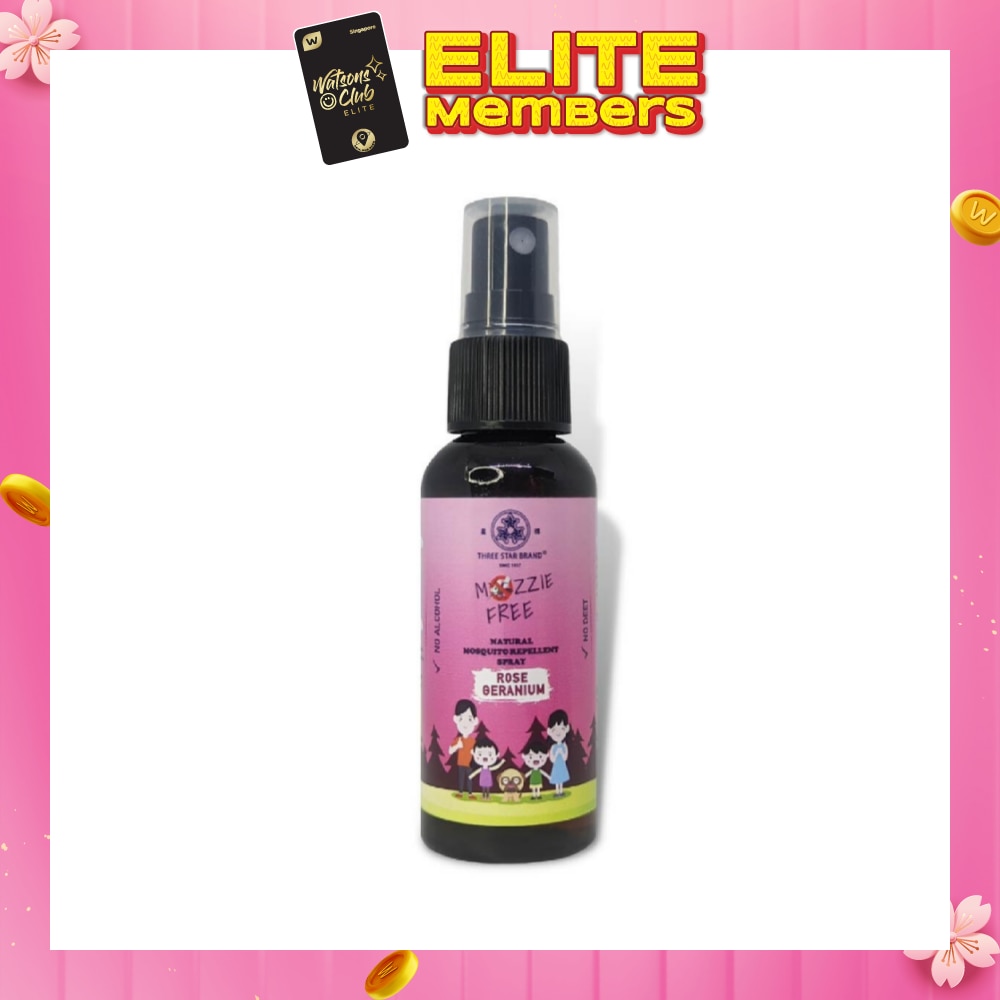 THREE STAR BRAND Natural Mozzie Free Natural Mosquito Repellent Spray Rose Geranium (No Alcohol + No Deet) 50ml