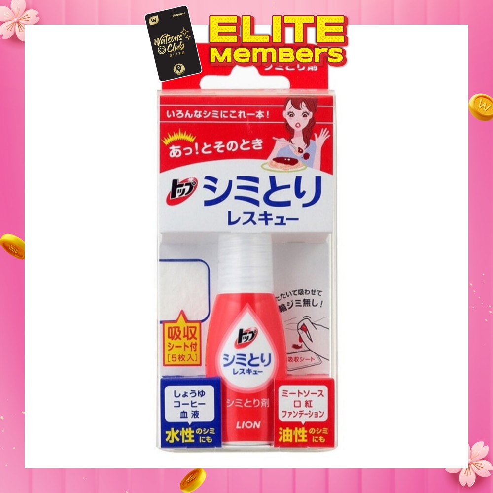 Made in Japan, TOP Fabric Spot Remover 17ml with 5 Blotting Sheets is able to remove stains such as sauces, juice, coffee, blood, cosmetics (lip sticks or foundation), etc on fabric. Suitable to use for white and coloured clothes, cotton, silk, wool and polyester fabrics.