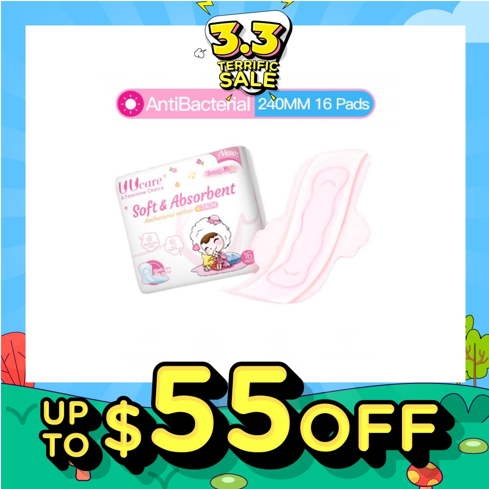 UUcare Young Girl Antibacterial sanitary pad has antibacterial properties on full surface of the pad, antibacterial eliminates against odour effectively for at least 12 hours, its adhesive is made of food grade glue so no chemical will invade your body. Fast absorbtion keeps you fresh and dry all day.