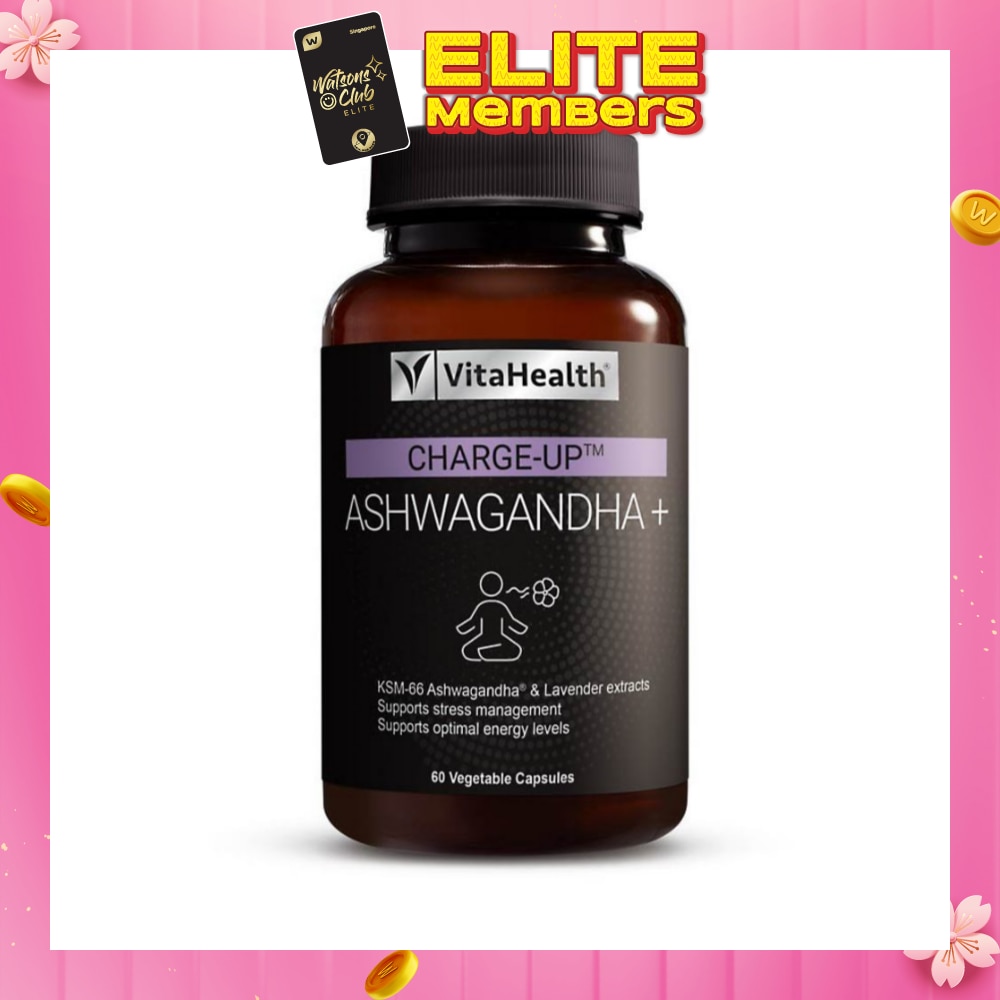 VitaHealth CHARGE-UP ASHWAGANDHA+ is a 100% natural herbal supplement combining Ashwagandha Extract (KSM-66) and Lavendar Extract into one herbal formula to provide dietary support for the management of physical stress, tiredness and assist with a natural restful sleep.