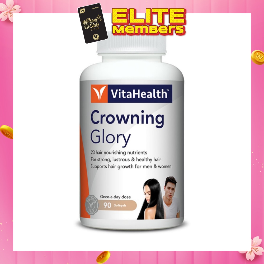 VitaHealth Crowning Glory is a targeted hair nutrition softgel which includes 23 hair nourishing nutrients that are known for strong, lustrous and healthy hair growth.