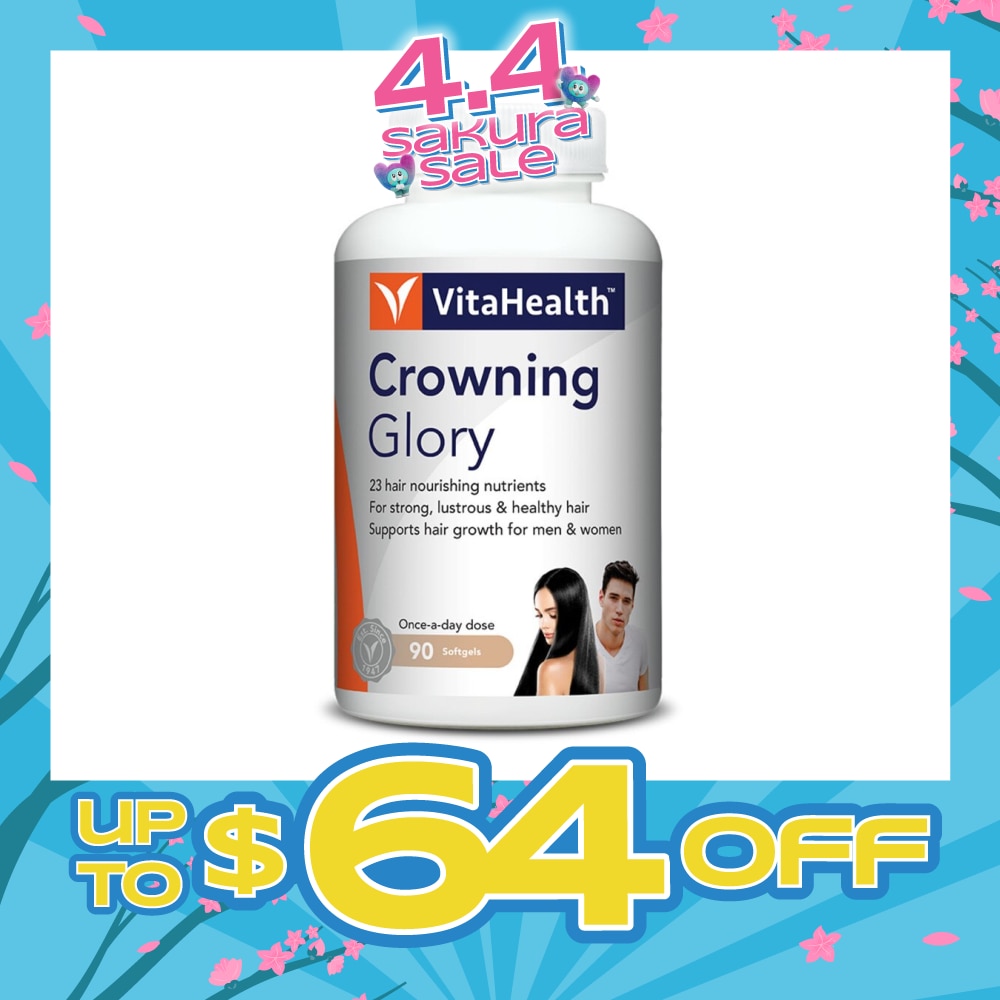 VitaHealth Crowning Glory is a targeted hair nutrition softgel which includes 23 hair nourishing nutrients that are known for strong, lustrous and healthy hair growth.