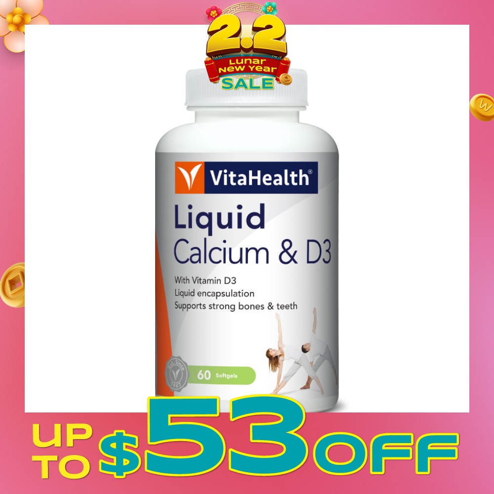 VITAHEALTH Liquid Calcium & D3 Softgel (Liquid Form Calcium, Strengthen Bone & Teeth, Increase Bone Density) 60s