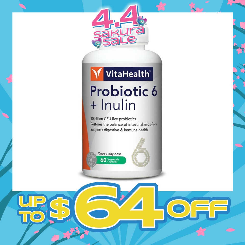 VitaHealth Pro-6 + Inu is formulated 10-billion CFU count of friendly bacteria and inulin to support healthy intestinal bacteria.