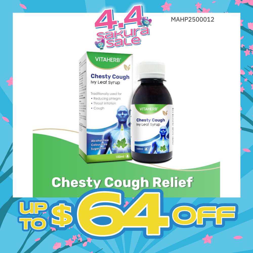 VITAHERB Chesty Cough Ivy Leaf Syrup (For Reducing Phlegm, Throat Irritation & Cough) 100ml