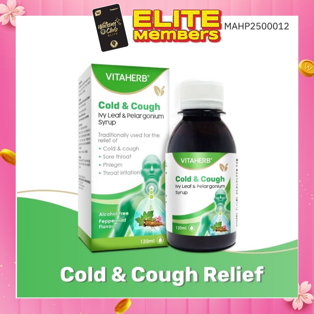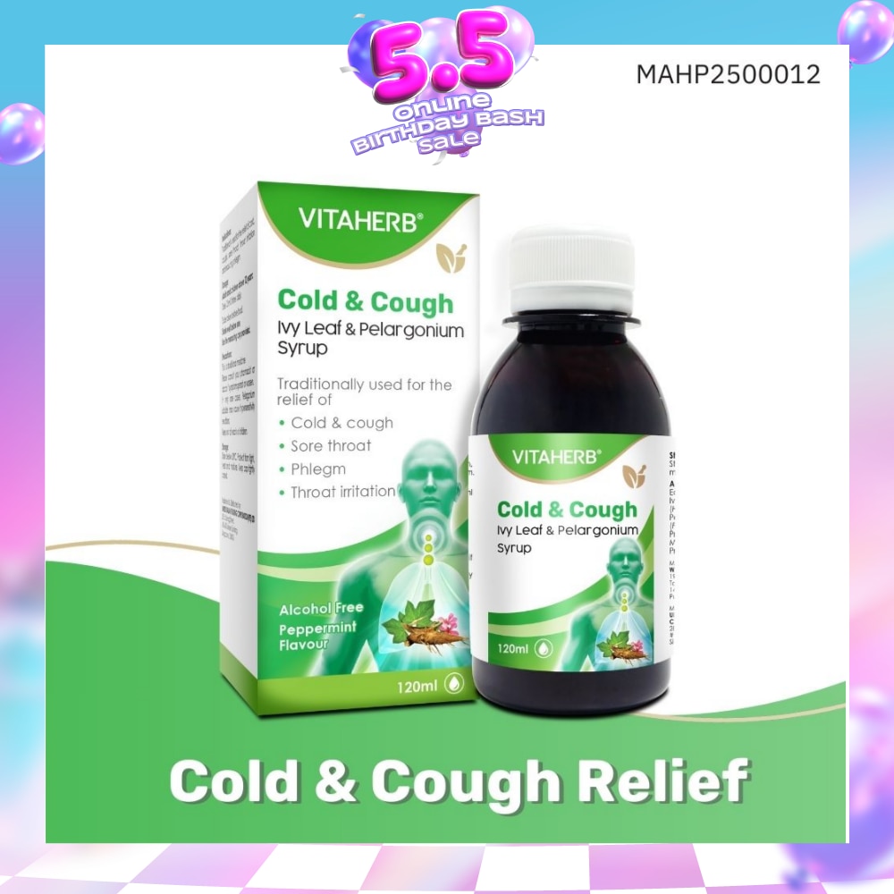 VITAHERB Cold & Cough Ivy Leaf & Pelargonium Syrup (To Relief Cold & Cough, Sore Throat, Phlegm & Throat Irritation) 120ml