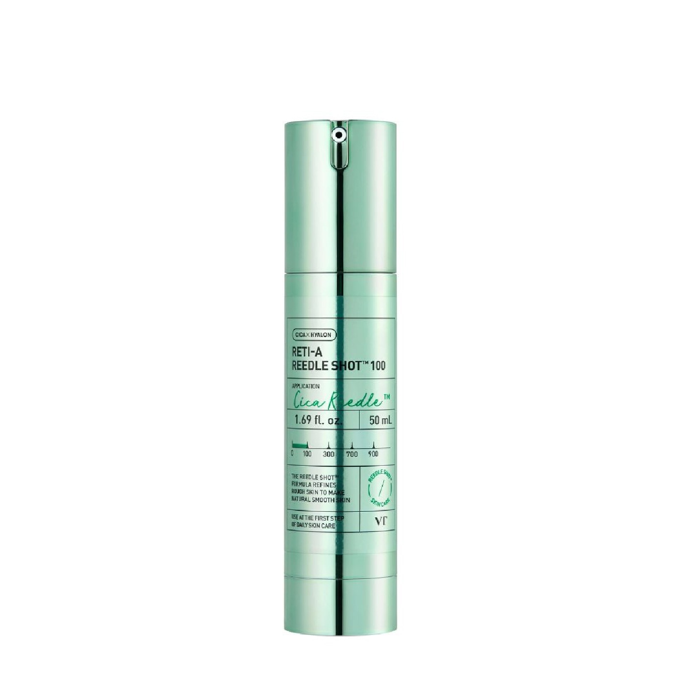 Achieve seamless, dense skin texture through the synergy of Reti-A and microneedle technology, where the combined power of Reedle Shot and Reti-A focuses on refining skin texture for a porcelain-like smooth finish; CICA Reedle micro-particles enhance absorption while Reti-A (Retinol & Vitamin A) retexturizes the skin, working alongside VT’s proprietary CICA-HYALON and CICA-REEDLE to boost efficacy and improve retinol stability, enriched with bakuchiol as a plant-based retinol alternative, polyphenols and allantoin for clarifying, soothing, and hydrating benefits, all delivered in a smoothing emulsion texture that absorbs gently and provides intense hydration for effective overnight retinol care.