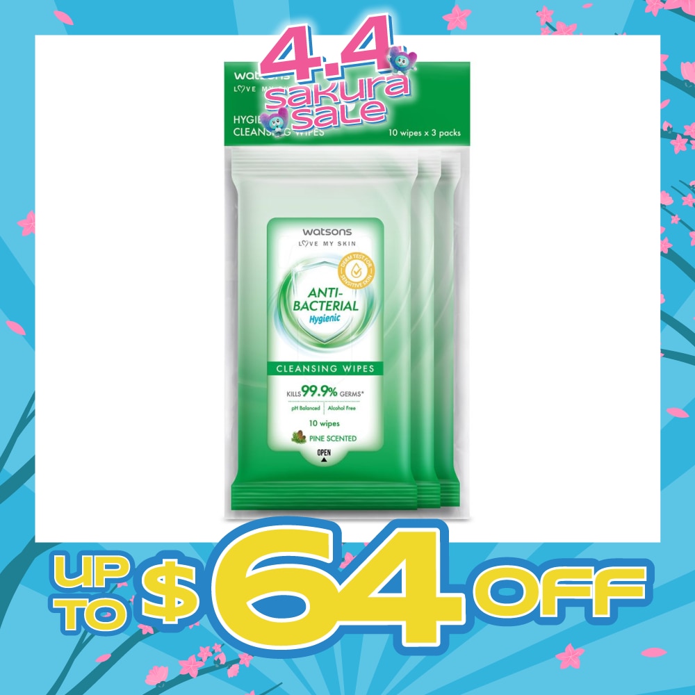 Anti-Bacterial Hygienic Cleansing Wipe Pine Pack Set (For Skin Nourishing & Moisturising) 10s x 3 Pack