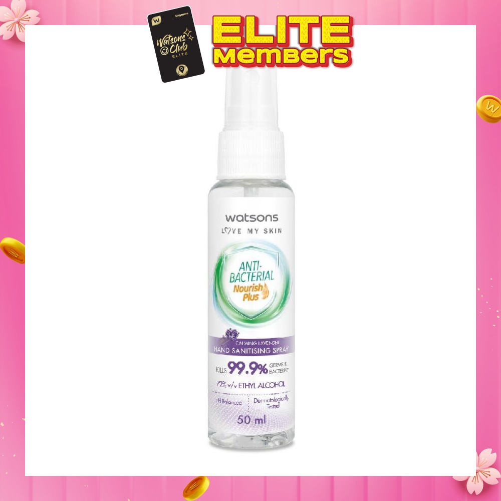 WATSONS Anti Bacterial Nourish Plus, Calming Lavender Hand Sanitiser Spray (Kills 99.9% Germs And Bacteria*) 50ml