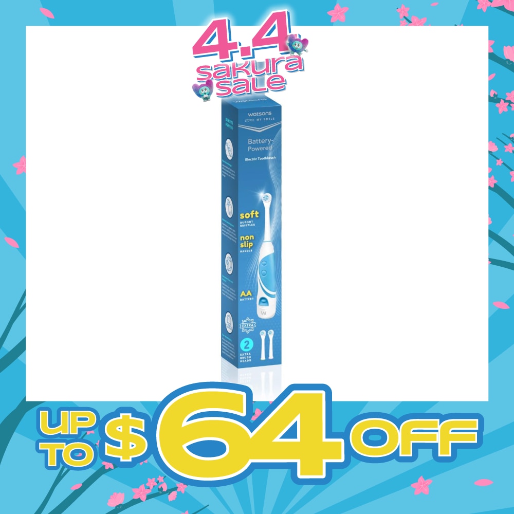 WATSONS Battery Powered Electric Toothbrush (Soft Dupont Bristles) 1s & Replacement Head 2s