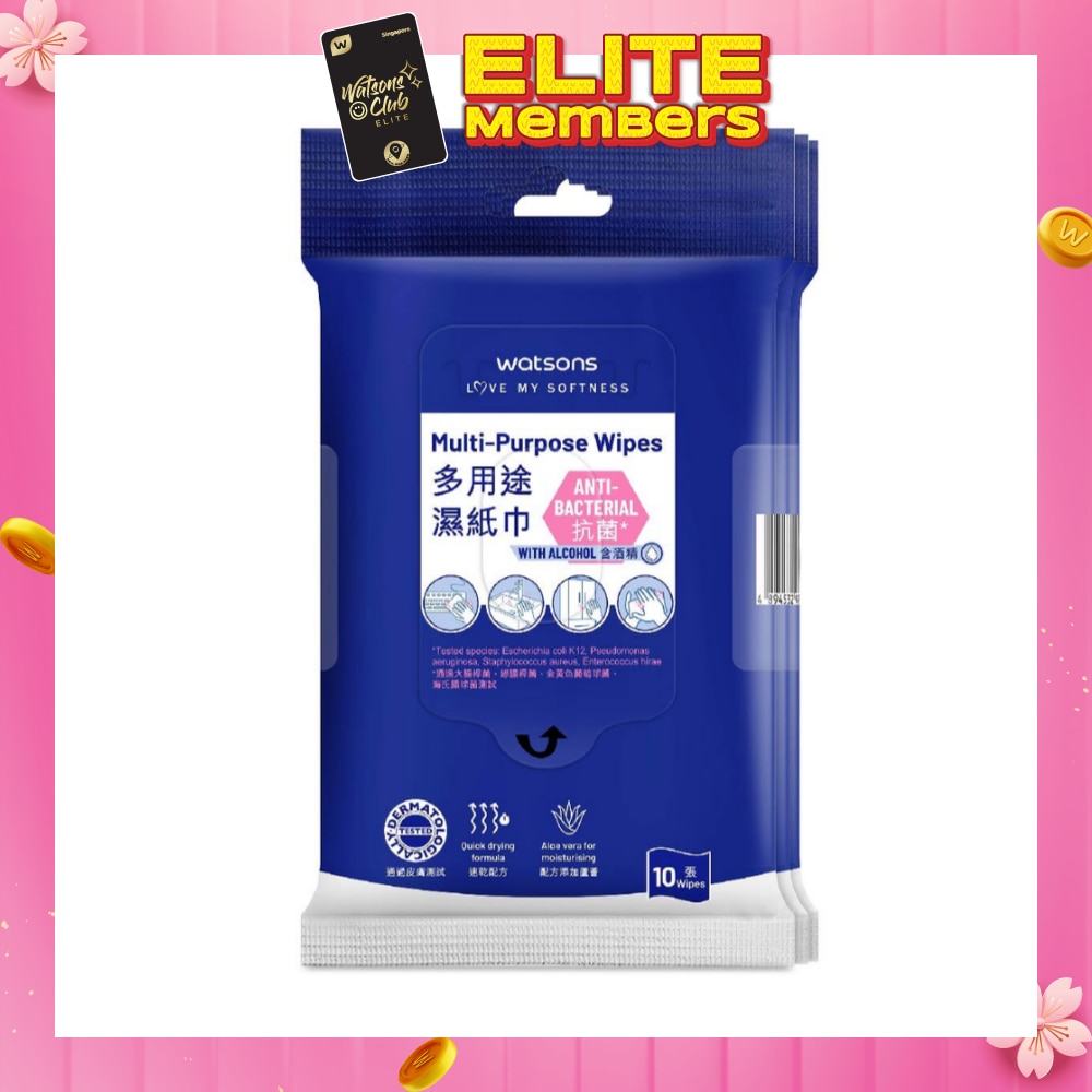 WATSONS Multi-Purpose Wipes (Anti-Bacterial, With Alcohol) 10s x 3packs