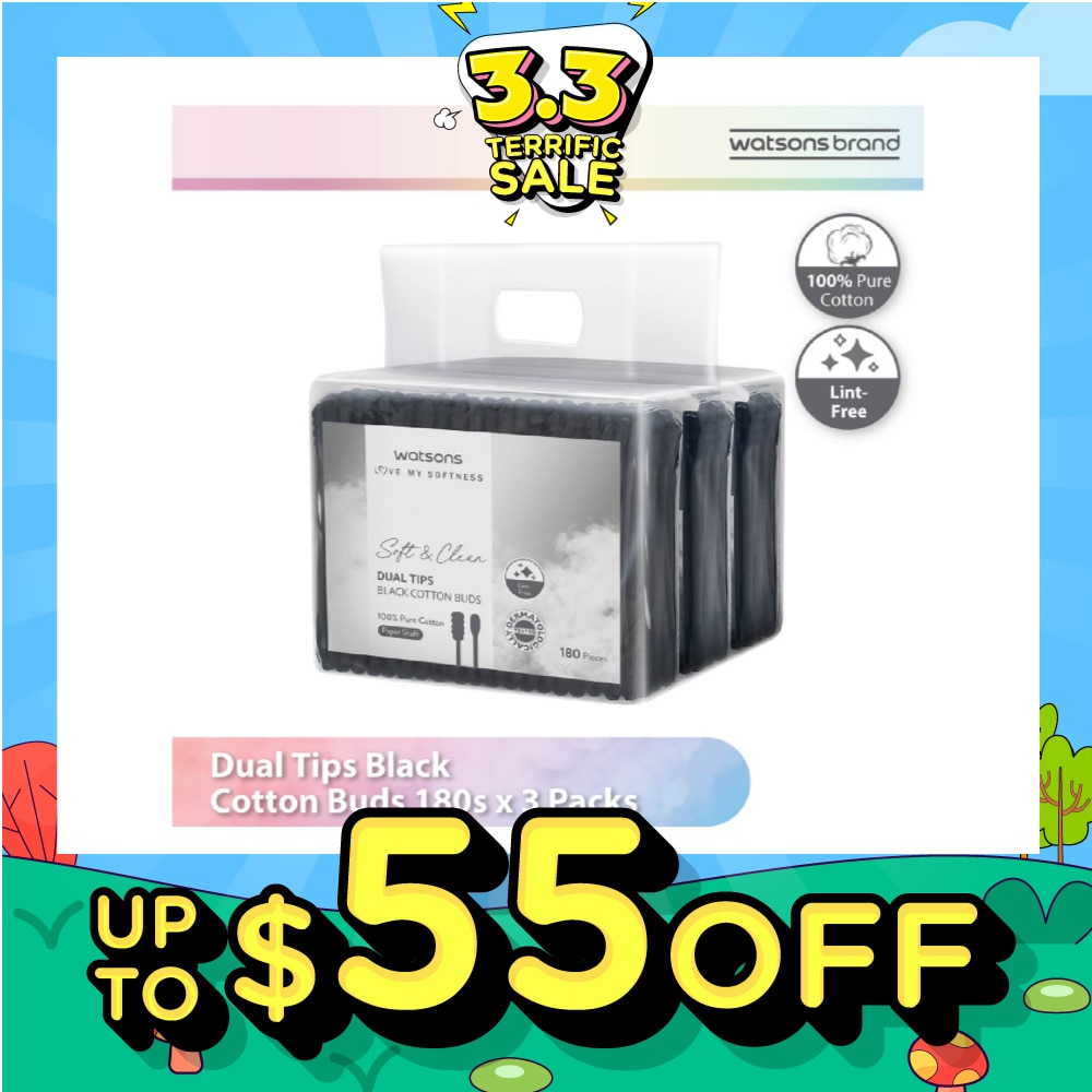 WATSONS Dual Tips Black Cotton Buds 180s X 3s