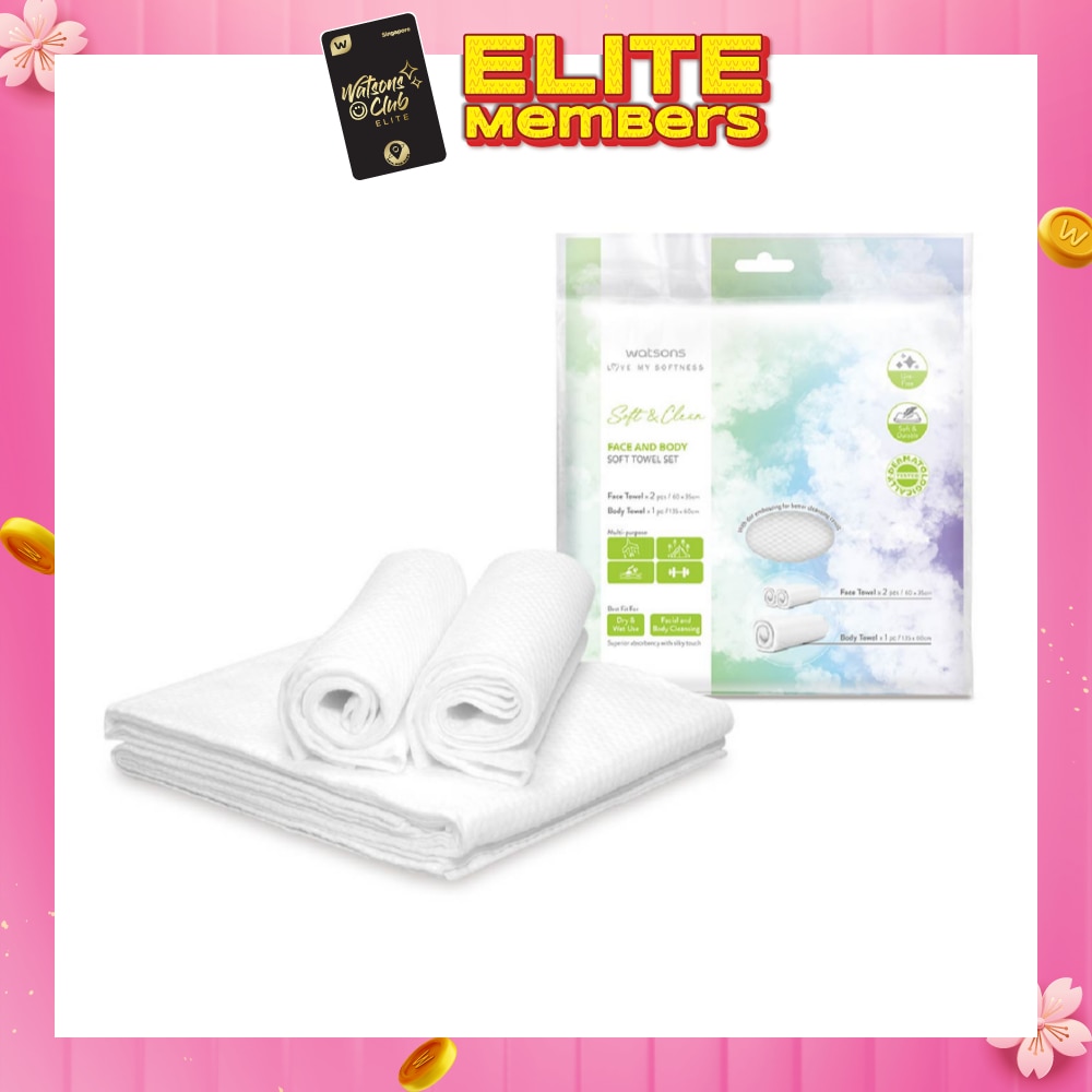 WATSONS Face & Body Soft Towel Set (Face Towel 60cm x 35cm 2s & Body Towel 135cm x 60cm 1s) 1s