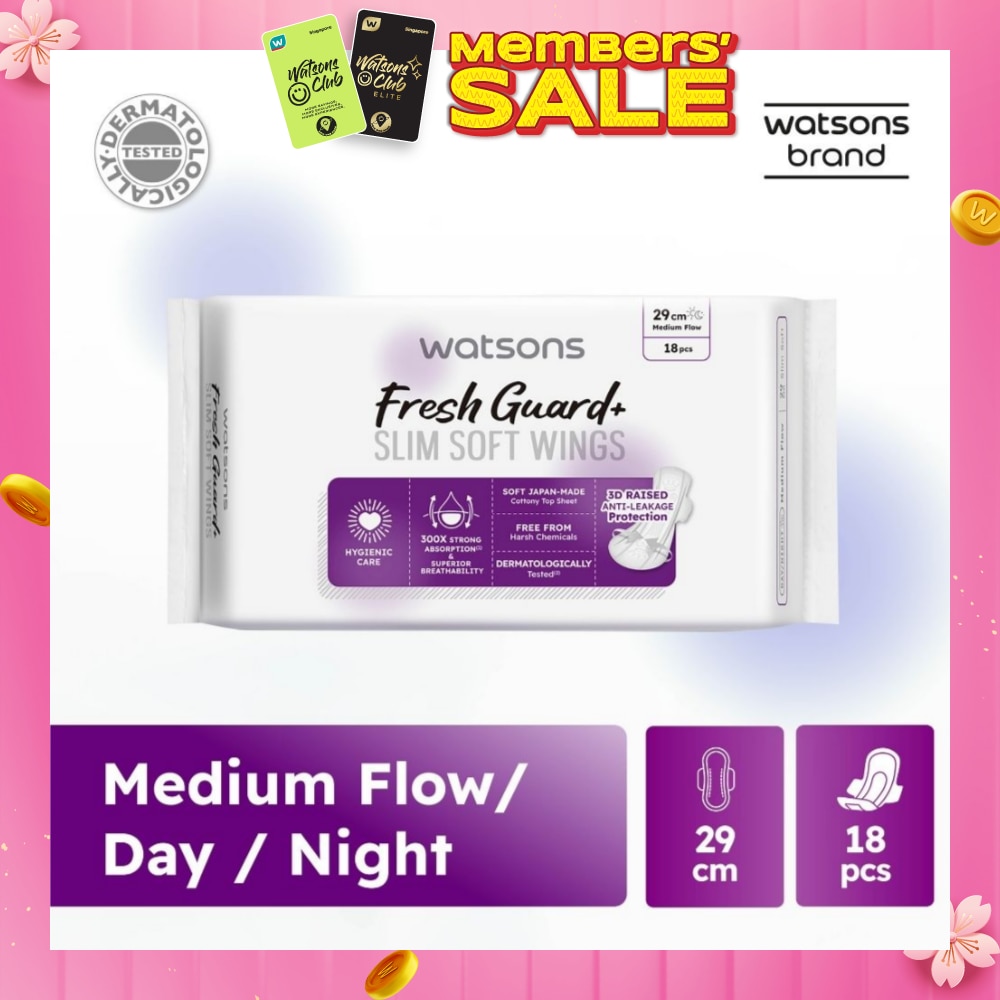 WATSONS Fresh Guard+ Slim Soft Wings Medium Flow Sanitary Pad 29cm 18s