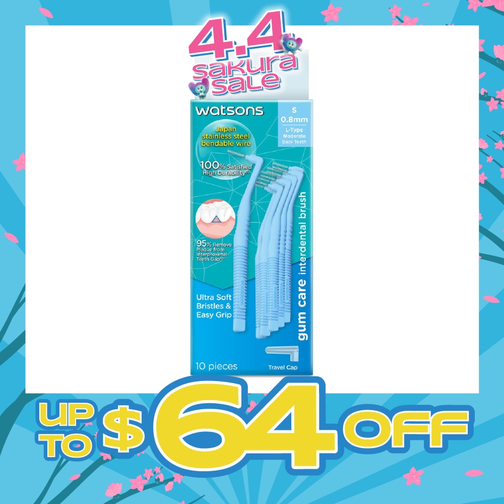 WATSONS L-Type Interdental Brush, 0.8Mm (For Back And Moderately Spaced Teeth, High Durability, Ultra-Soft & Easy Grip) 10s
