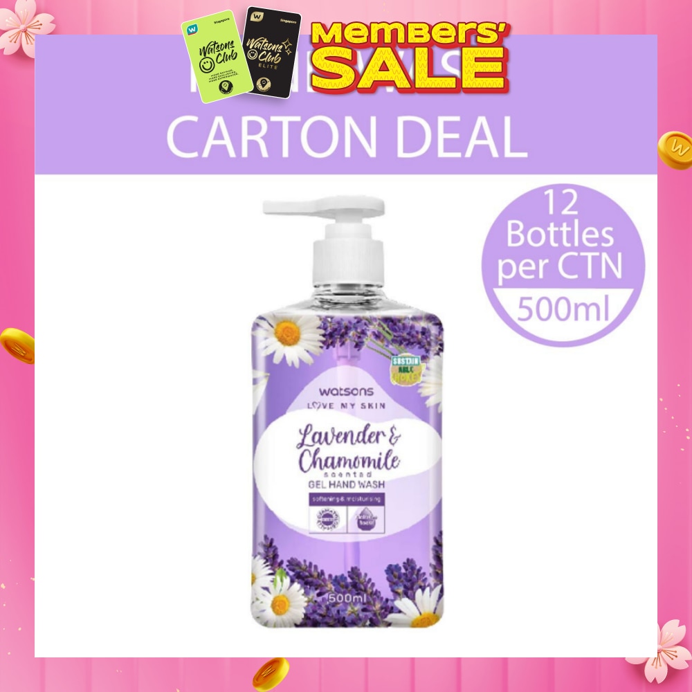 WATSONS Lavender & Chamomile Scented Gel Hand Wash (Softening & Moisturising, Dermatologically Tested) 500ml X 12 Bottles Per Carton