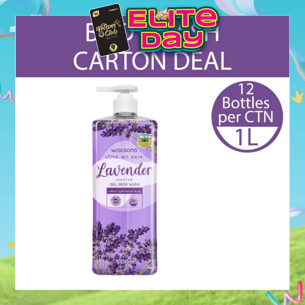 WATSONS Lavender Scented Gel Body Wash (Softening And Moisturising, Dermatologically Tested) 1000ml X 12 Bottles Per Carton