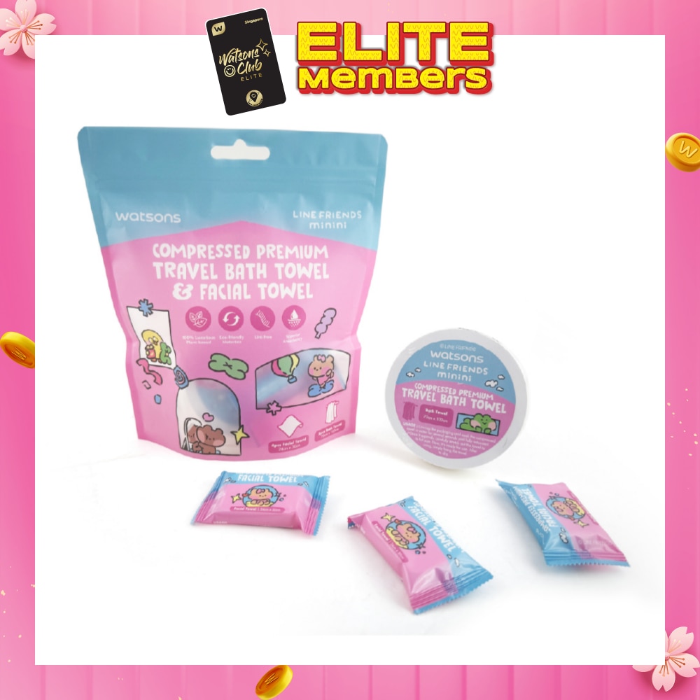 WATSONS Line Friends Minini Compresed Premium Travel Bath Towel & Facial Towel 6pcs