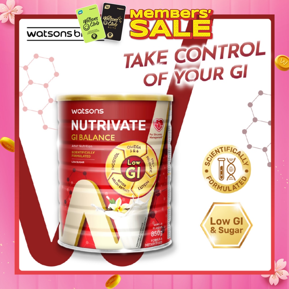 Watsons Nutrivate GI Balance Adult Nutrition is scientifically formulated with a low GI to provide complete and balanced nutrition for adults, supporting glycemic management* in adults. Designed to support strength and vitality, this delicious beverage is suitable to be used as a meal replacement or a nutritious boost empowering you to meet your nutritional needs and elevate your daily routine and quality of life.