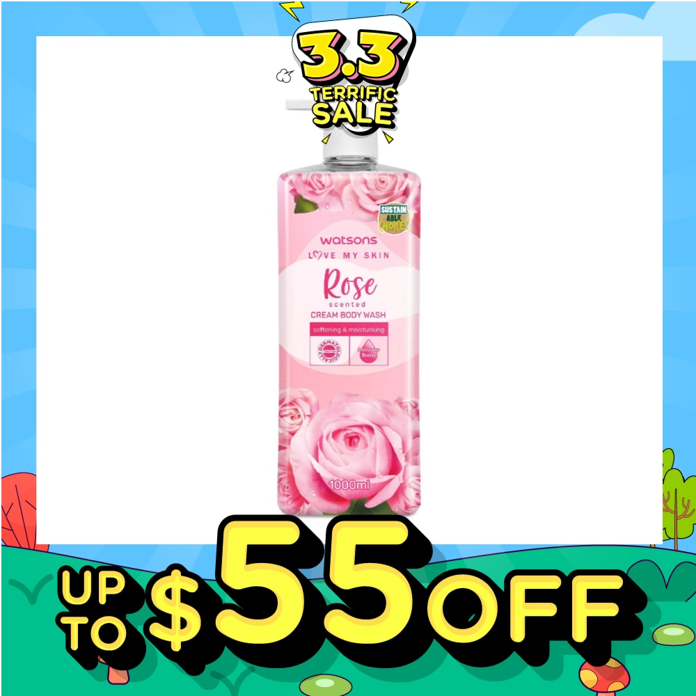 WATSONS Rose Scented Cream Body Wash (Softening And Moisturising, Dermatologically Tested) 1000ml