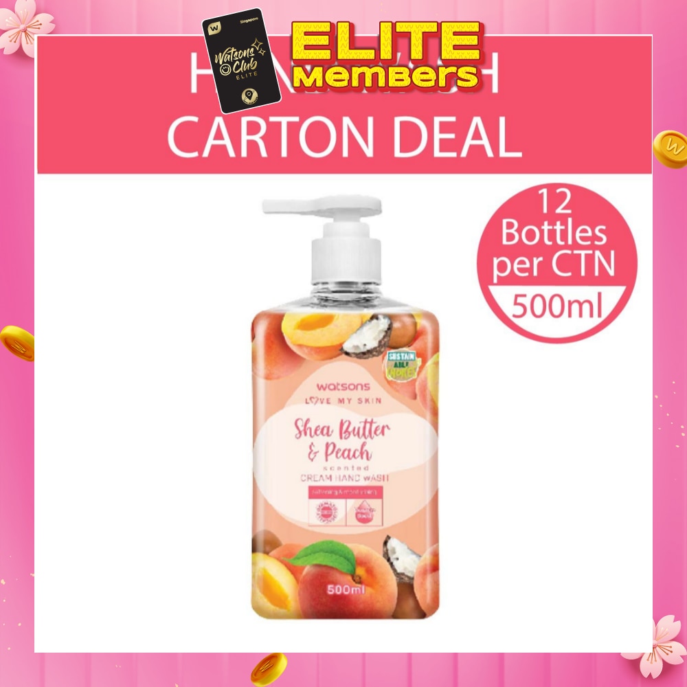 WATSONS Shea Butter & Peach Scented Cream Hand Wash (Softening & Moisturising, Dermatologically Tested) 500ml X 12 Bottles Per Carton