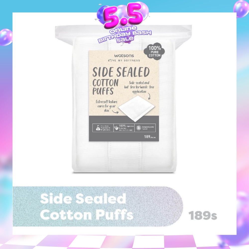 WATSONS Side Sealed Cotton Puff (100% Pure Cotton) 189s