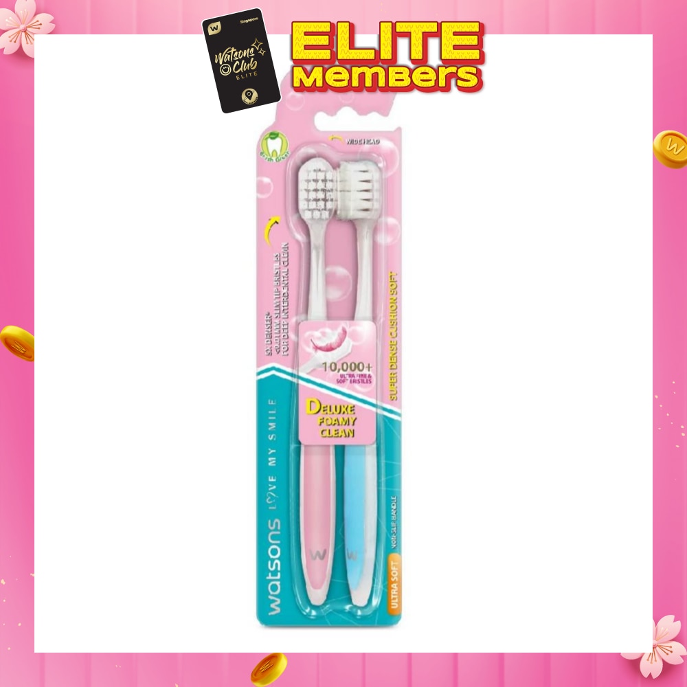 WATSONS Super Dense Cushion Soft Toothbrush Ultra Soft (<0.01mm Ultra-Fine Soft Anti-Bacterial Bristles + Wide Head) 2s