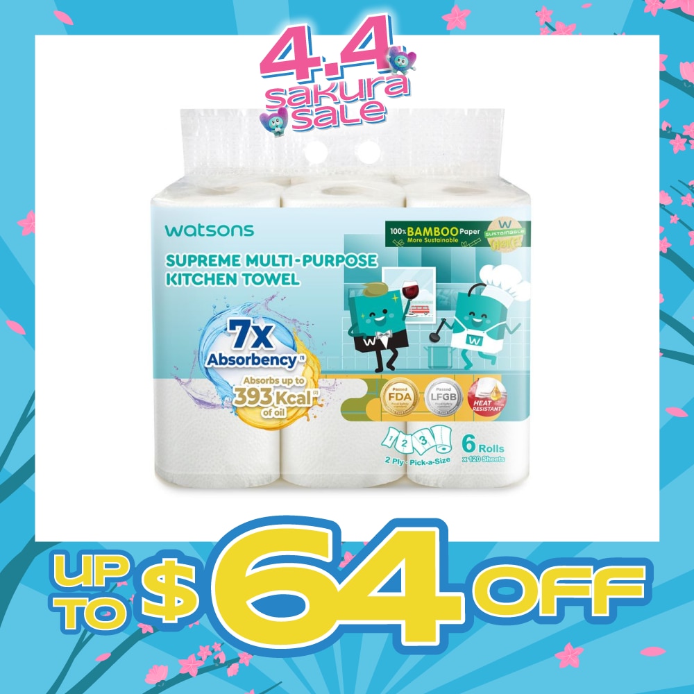 WATSONS Supreme Multi-Purpose Kitchen Towel 2 Ply Sheet 120s x 6 Rolls