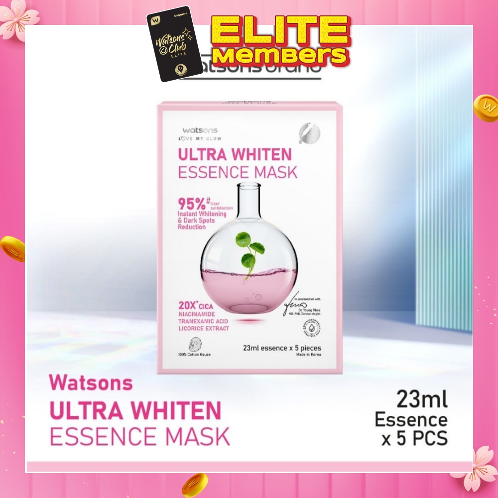 WATSONS Ultra Whiten Essence Sheet Mask 23ml (With 3% Niacinamide, Tranexamic Acid & Licorice Extract) 5s